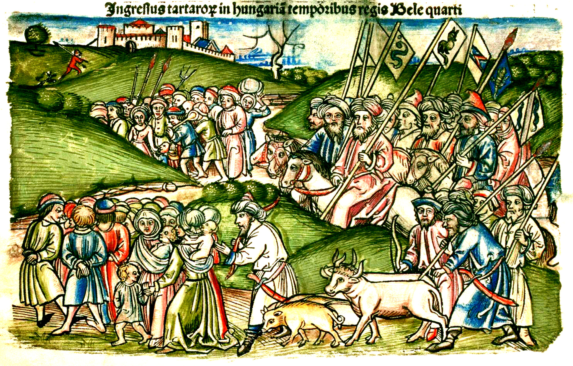 Rycina przedstawiająca pierwszy najazd mongolski na Węgry z Chronica Hungarorum